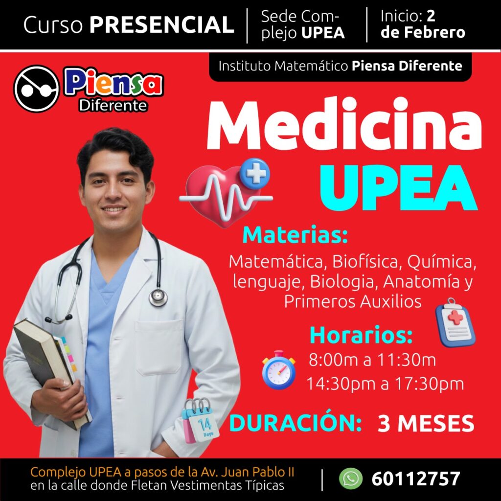 Piensa DigitalBs.350.00Bs.300.00(0)MEDICINA UPEA T. MAÑANA SEDE COMPLEJO UPEA INICIO: 9 DE FEBRERO